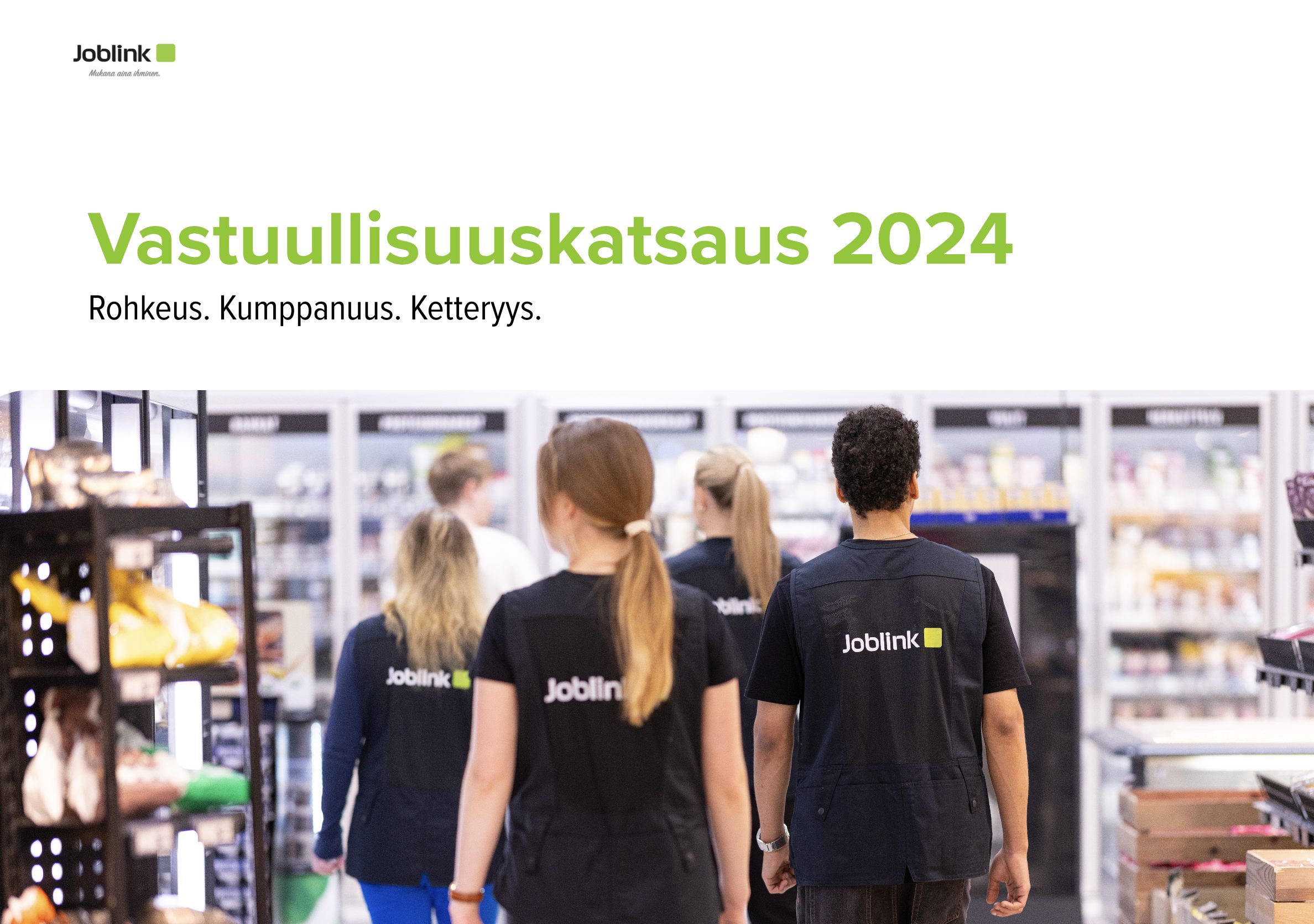 Tämä raportti kokoaa yhteen keskeiset teot, edistysaskeleet ja tavoitteet, jotka ohjaavat Joblinkin vastuullisuustyötä tulevina vuosina.